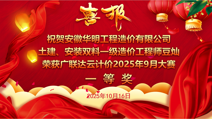 在刚刚结束的2025年09月份广联达云计价大赛中,安徽华明工程造价有限公司造价团队再创佳绩,经过与安徽省造价高手的激烈角逐,我司豆灿勇夺一等奖,刘凯、罗睿荣获二等奖!本次大赛由行业领先的数字建筑平台服务商广联达科技股份有限公司安徽分公司主办。此次双奖加冕,不仅是对获奖工程师个人专业能力的顶级认可,更是安徽华明工程造价有限公司在建筑工程数字化造价、精细化成本管控领域 深厚实力与领先水平的集中展现!