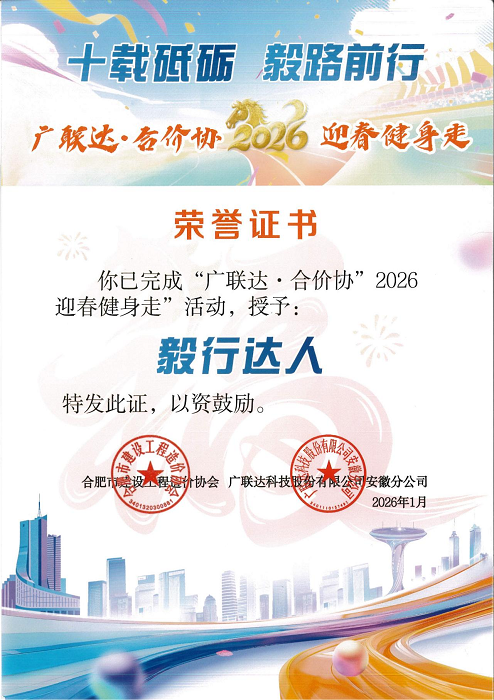 2025年是合肥市建设工程造价协会成立十周年。十载砥砺,奋力前行。为庆祝这一历史时刻,传承“合价协精神”,丰富业余文化生活,营造节日祥瑞氛围,经2026年1月14日会长联席会议研究决定,本月底,开展“广联达杯”2026合价协迎新春健身走活动,本着“凝聚会员、倡导健康、丰富生活、欢度春节”的宗旨,通过健身走活动,促进职工身心健康,推动全民健身运动,让职工过上一个欢乐祥和喜庆的新春佳节,进一步促进合价协会员单位互动交流,激发职工创新创造热情,集聚推动协会高质量发展力量。